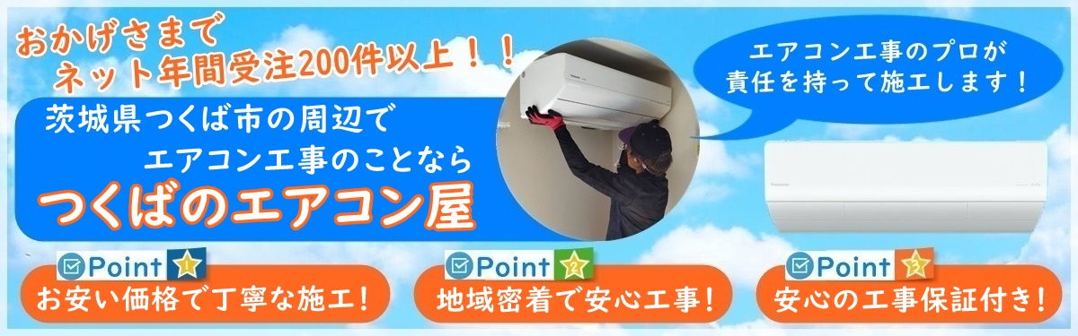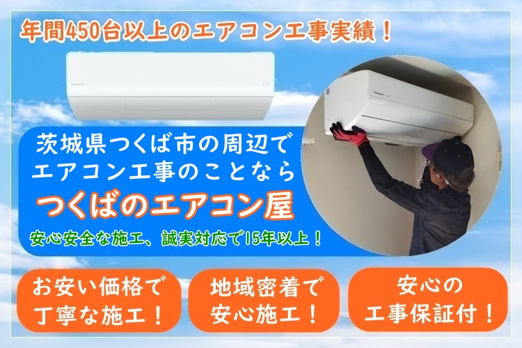 つくばのエアコン屋は家庭用のエアコン工事を主にエアコン取り付け・取り外し工事をおこなっている地域密着のエアコン業者で、つくば市を中心に茨城県で活動しております。